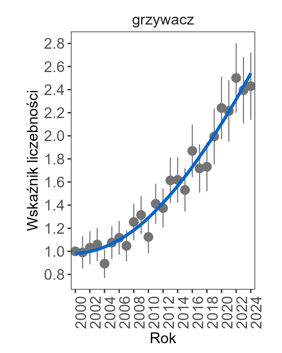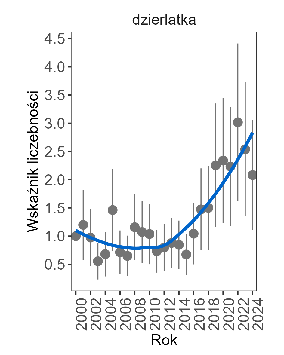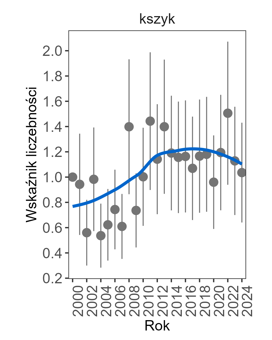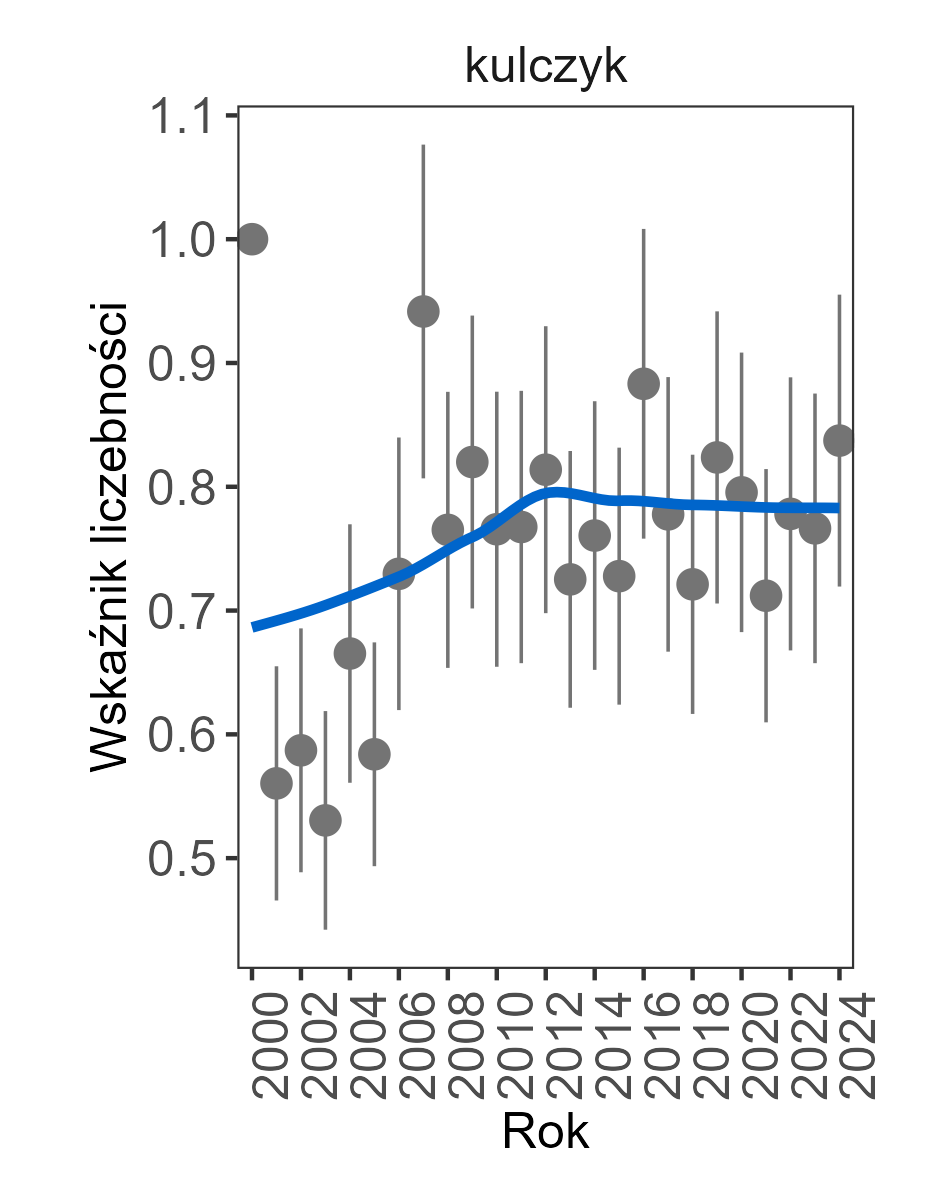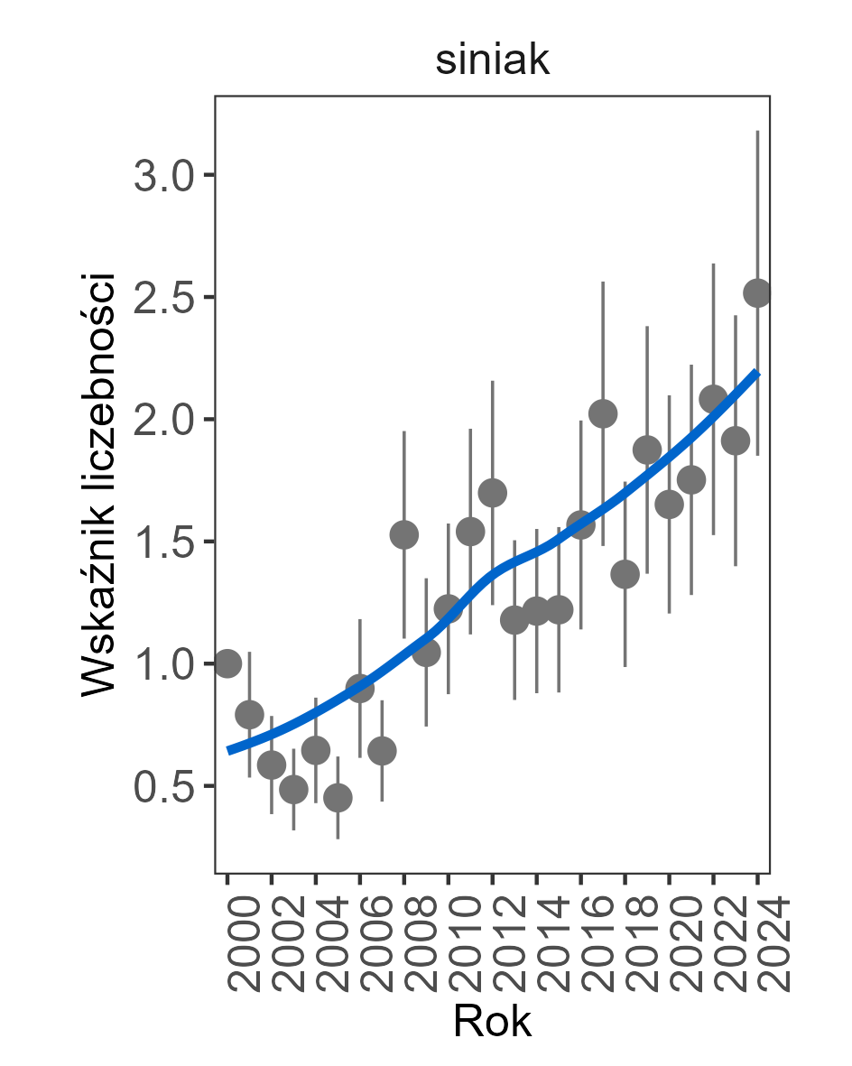 W ciągu 25 lat badań odnotowano umiarkowany wzrost liczebności 100 najszerzej rozpowszechnionych gatunków ptaków w Polsce. Wartość wskaźnika w roku 2024 wynosiła 1,0368, a średnie roczne tempo zmian w latach 2000-2024 – 0,23% . Jednak w okresie krótkoterminowym (ostatnie 12 lat) wartości wskaźnika zaczęły się zmniejszać, a jego krótkoterminowy trend okazał się być spadkowy.