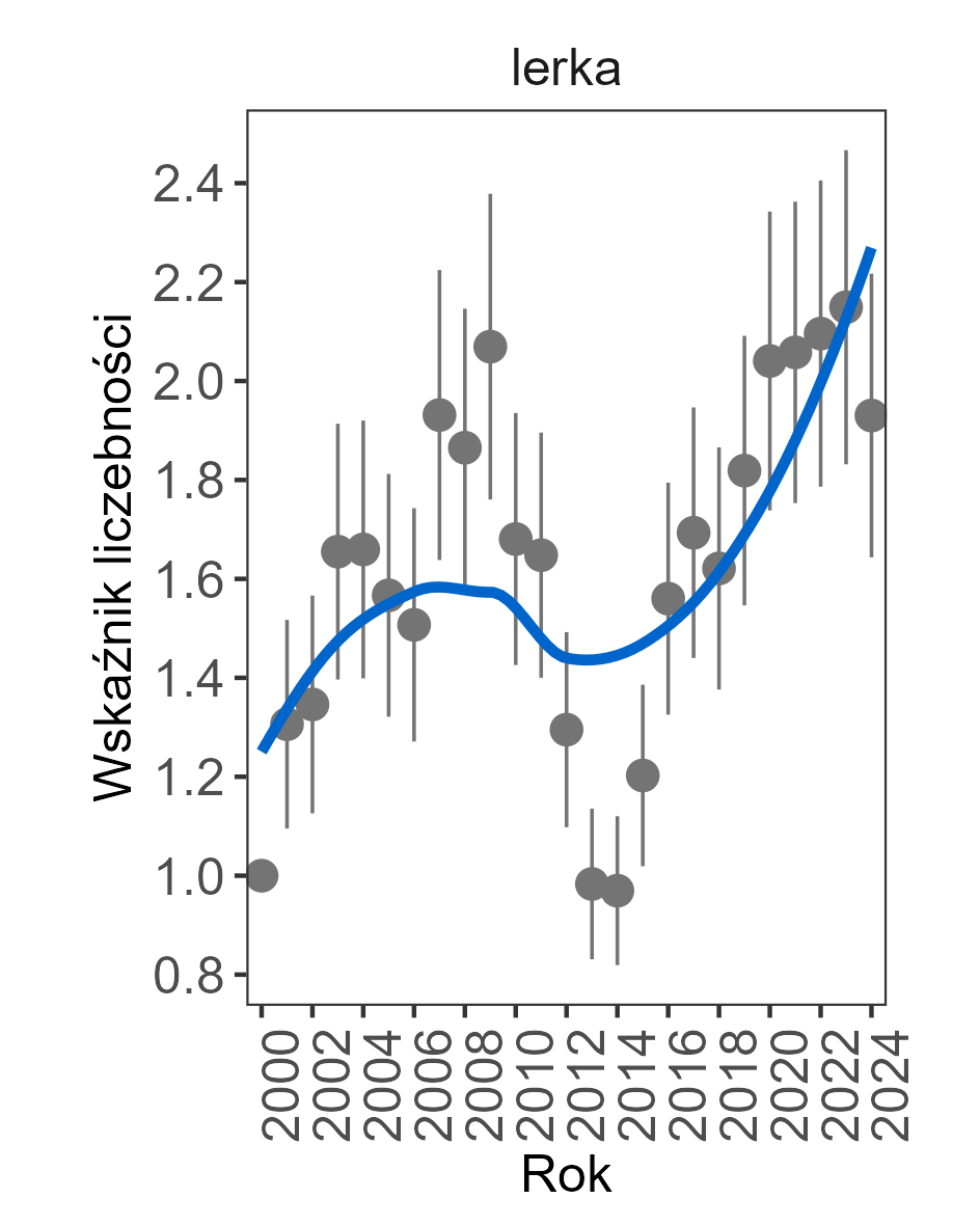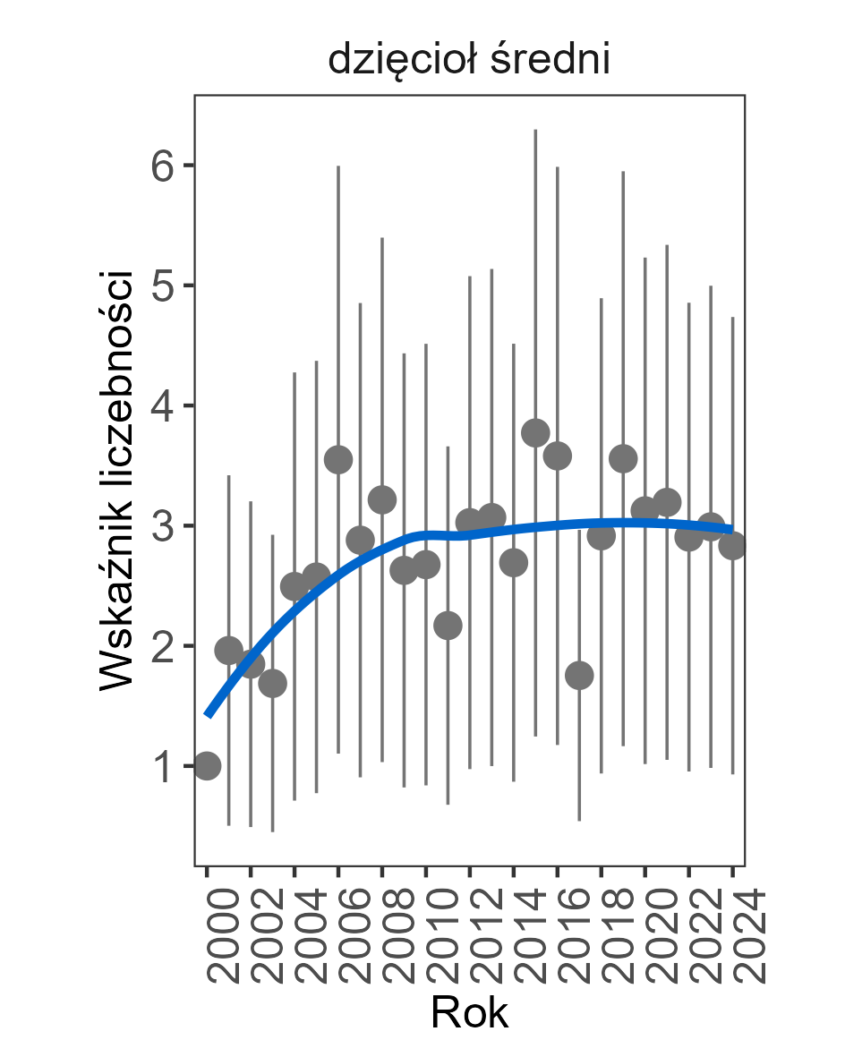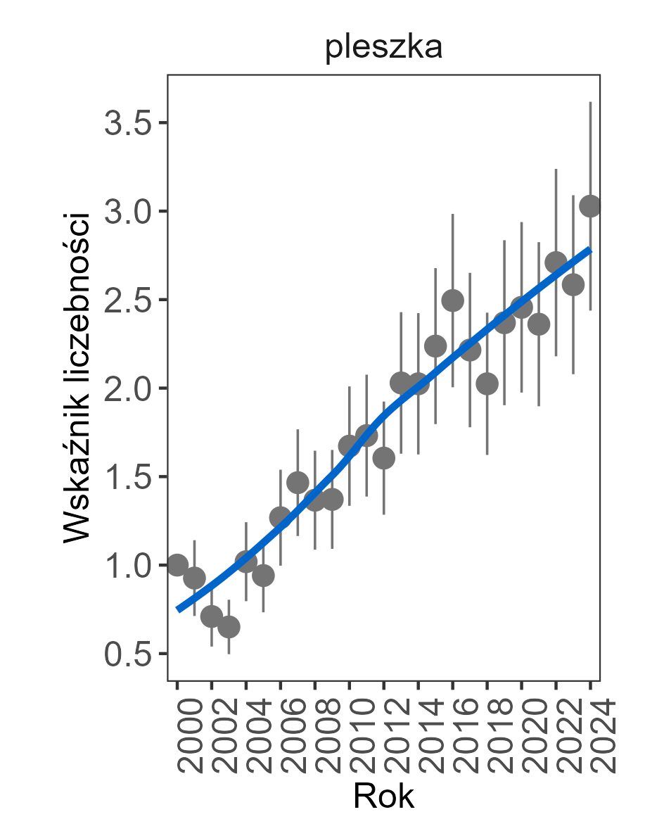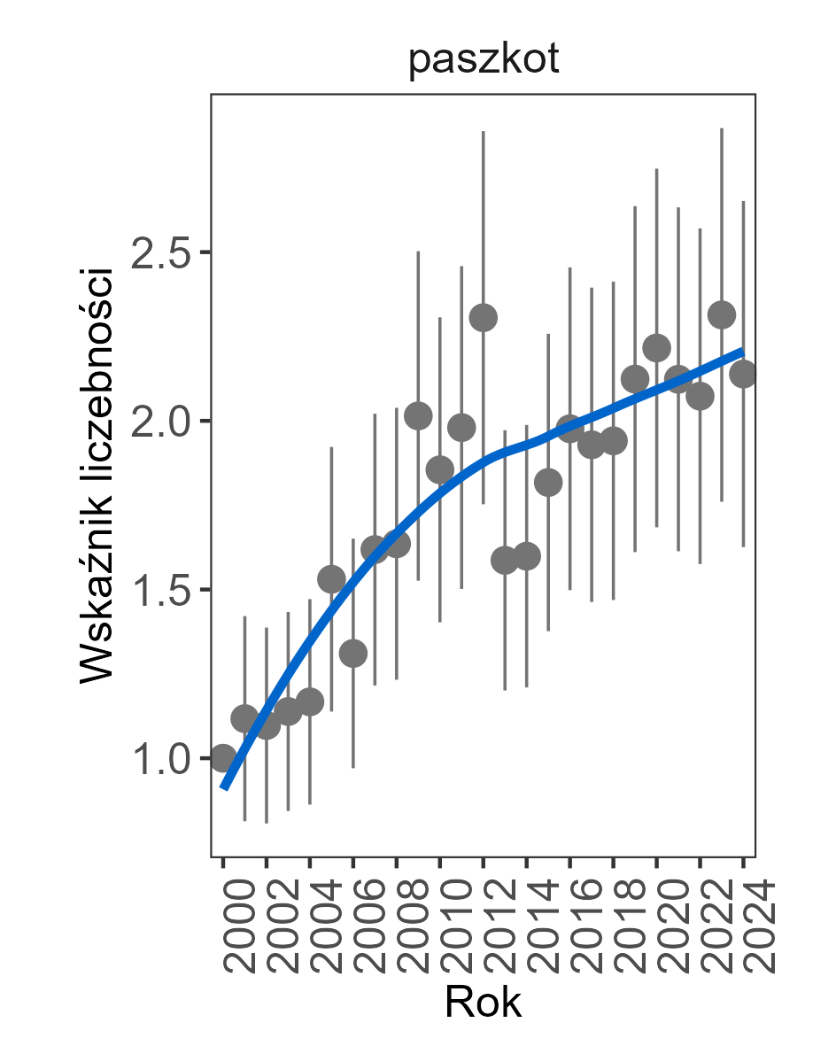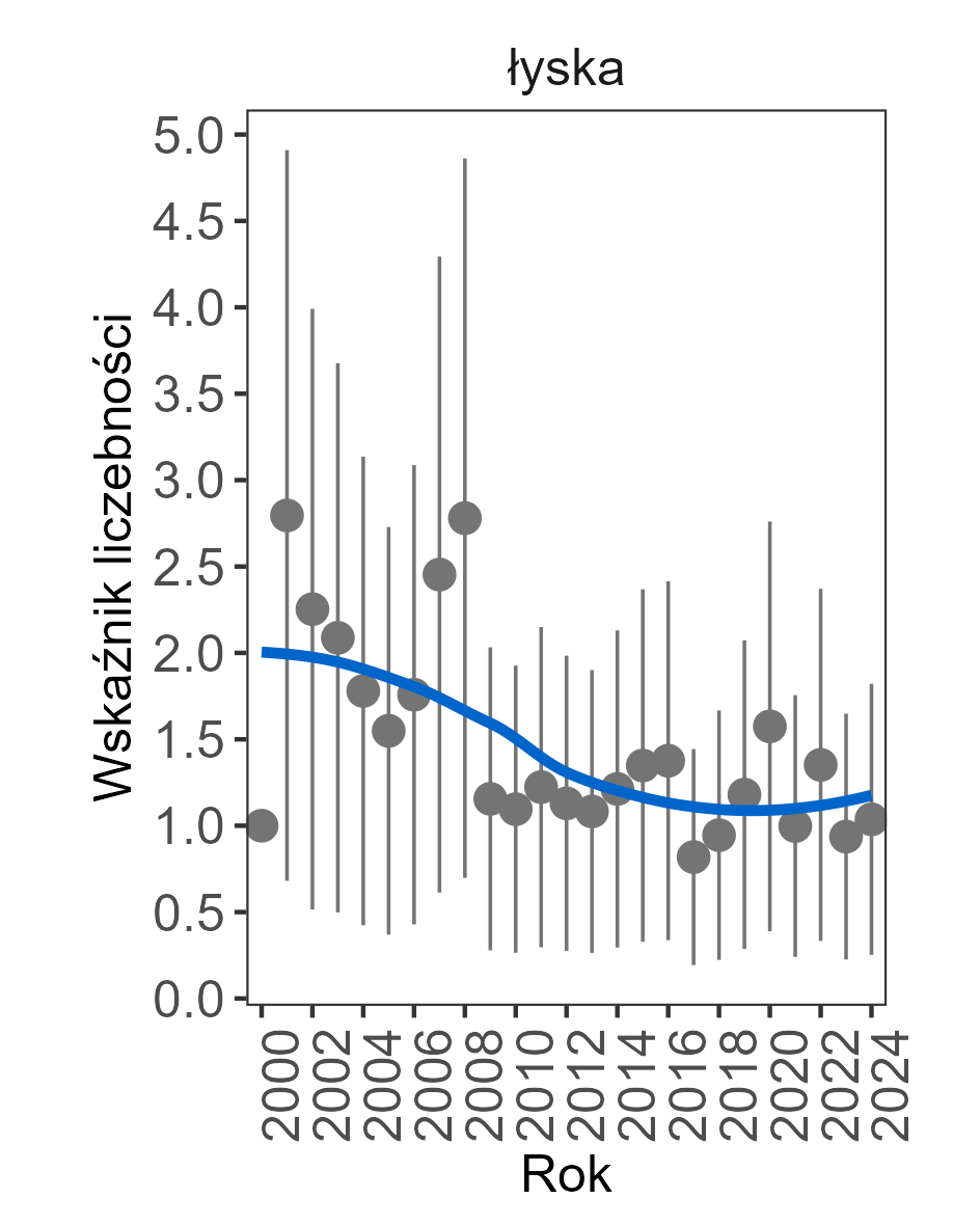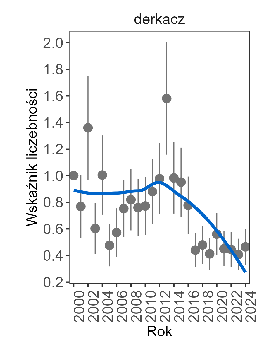 W ciągu 25 lat badań odnotowano umiarkowany wzrost liczebności 100 najszerzej rozpowszechnionych gatunków ptaków w Polsce. Wartość wskaźnika w roku 2024 wynosiła 1,0368, a średnie roczne tempo zmian w latach 2000-2024 – 0,23% . Jednak w okresie krótkoterminowym (ostatnie 12 lat) wartości wskaźnika zaczęły się zmniejszać, a jego krótkoterminowy trend okazał się być spadkowy.