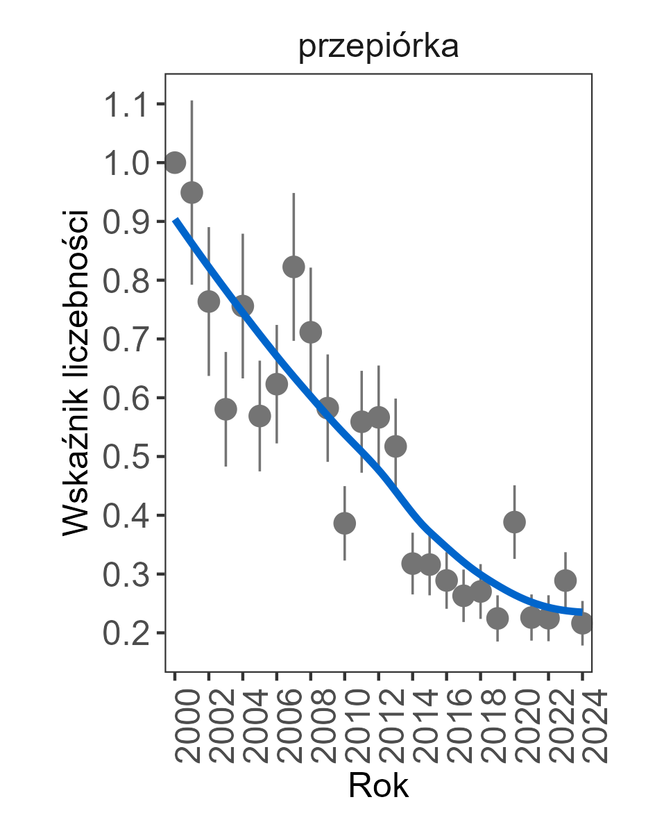 W ciągu ostatnich 12 lat pospolite ptaki w Polsce zmniejszyły liczebność średnio o 4,86%. Wzrosty liczebności odnotowywano głównie w pierwszej dekadzie XXI wieku, a w kolejnych latach wartości wskaźników stopniowo się zmniejszały.