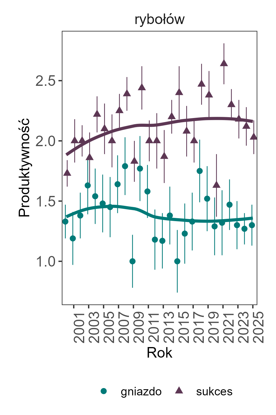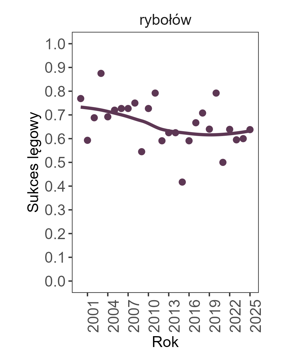 Sukces lęgowy i produktywność populacji lęgowej rybołowa były w całym okresie badań generalnie stabilne, choć w przypadku produktywności na parę z sukcesem zarysowuje się lekka tendencja wzrostowa.